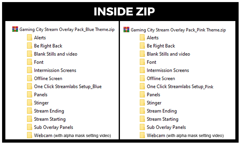 Gaming City Animated Stream Overlay Pack with 2 colour versions Blue & Pink
