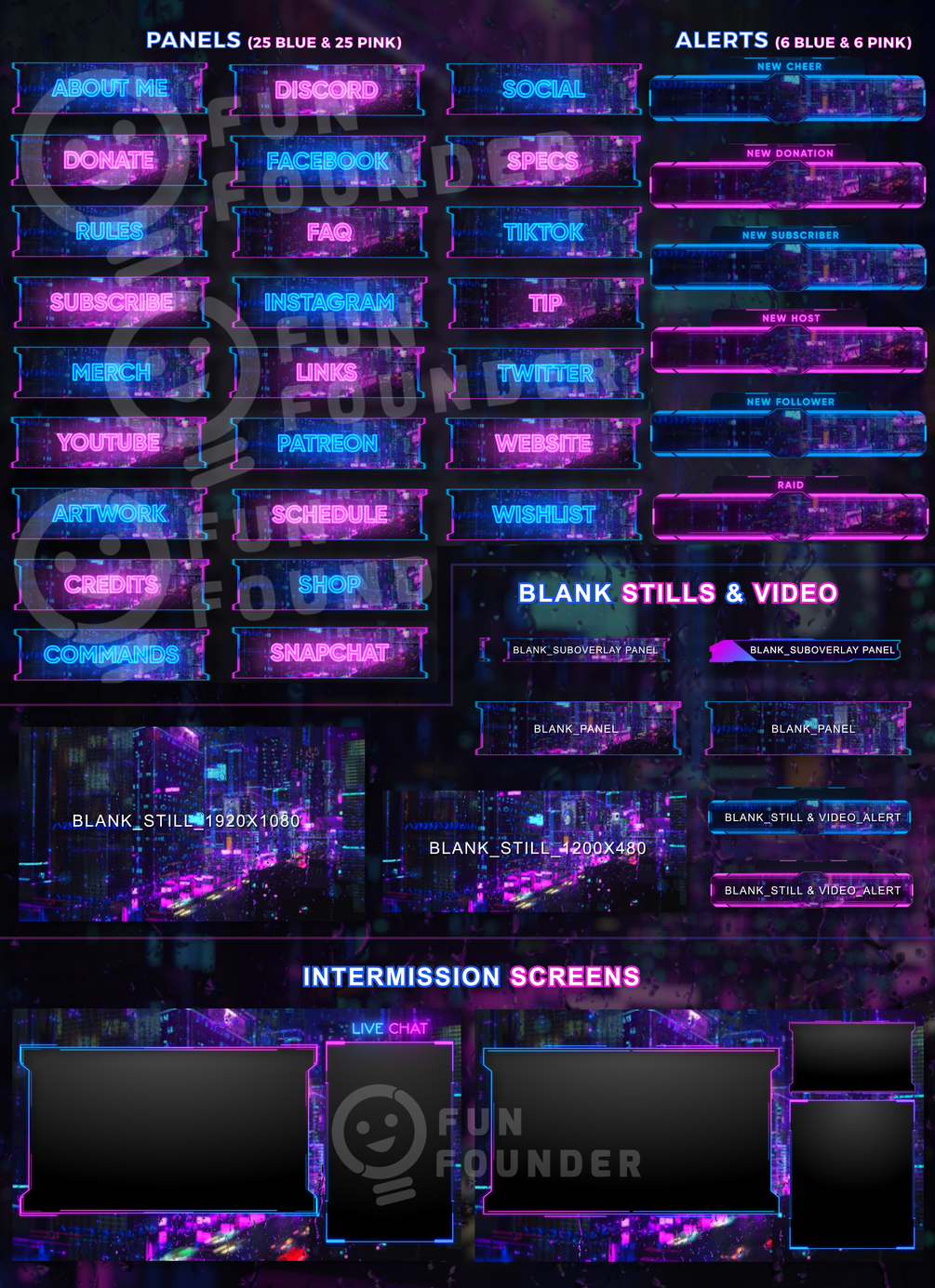 Hi, here is the Gaming City Animated Stream Overlay Pack with 2 colour versions Blue and Pink, i hope you guys like it. Thank You!