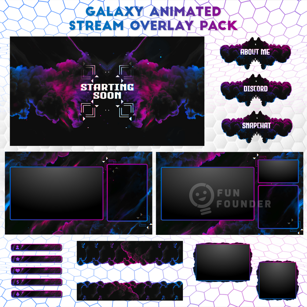 Hi, here is "Galaxy" Animated Stream Overlay Pack, i hope you guys like it. Thank You!